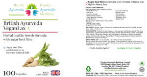 A combination of 12 herbal ingredients: rhubarb powder, aloe vera, cayenne powder, burdock root powder, sugar beet fibre (50mg), rhubarb root, clove bud powder, barberry bark, fennel seed, liquorice root, dandelion root and ginger root.