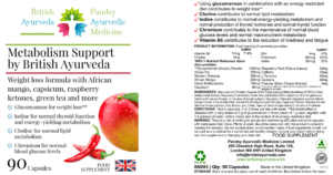This food supplement combines 11 herbal ingredients (glucomannan, bitter orange peel, raspberry ketones, caffeine anhydrous, green tea, L-Tyrosine, African mango, capsicum, guarana, Siberian ginseng and peperine), with vitamin B6, choline, zinc, chromium picolinate and iodine.